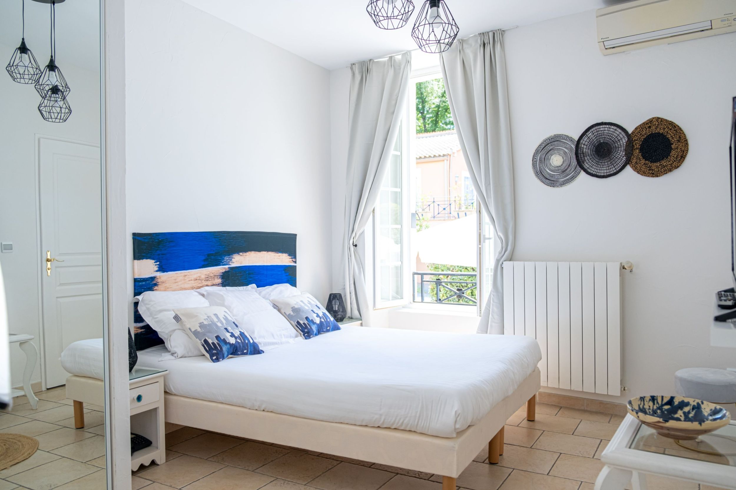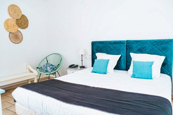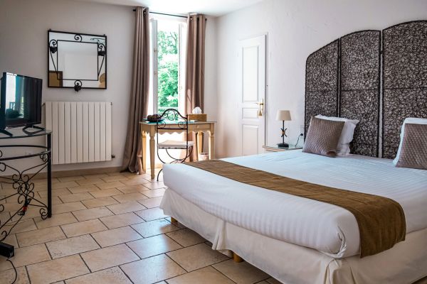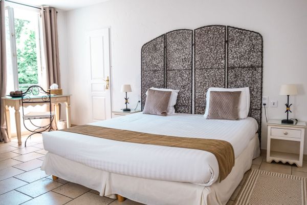 Nos chambres Supérieures avec vue sur notre piscine disposent d'un grand lit double.